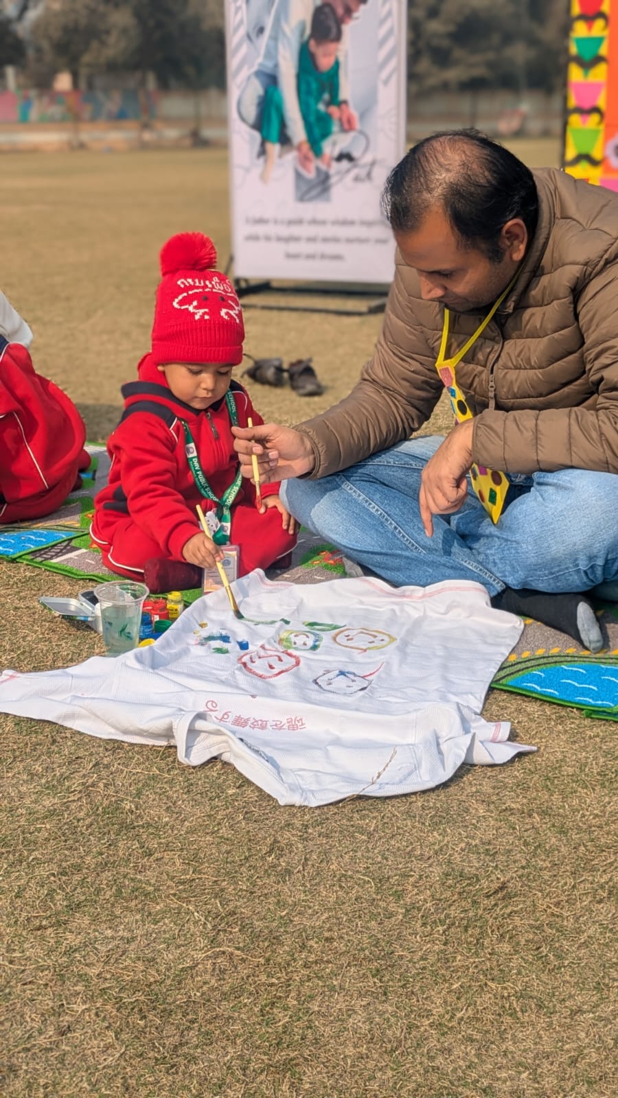 One of the most exciting activities was the “Daddy Dynamo Race,” where fathers ran hand-in-hand with their tiny tots, filling the venue with cheers, excitement, and radiant smiles. This was followed by “Splash of Love,” a creative T-shirt painting activity in which fathers and children painted together, expressing their love through colours and creativity.